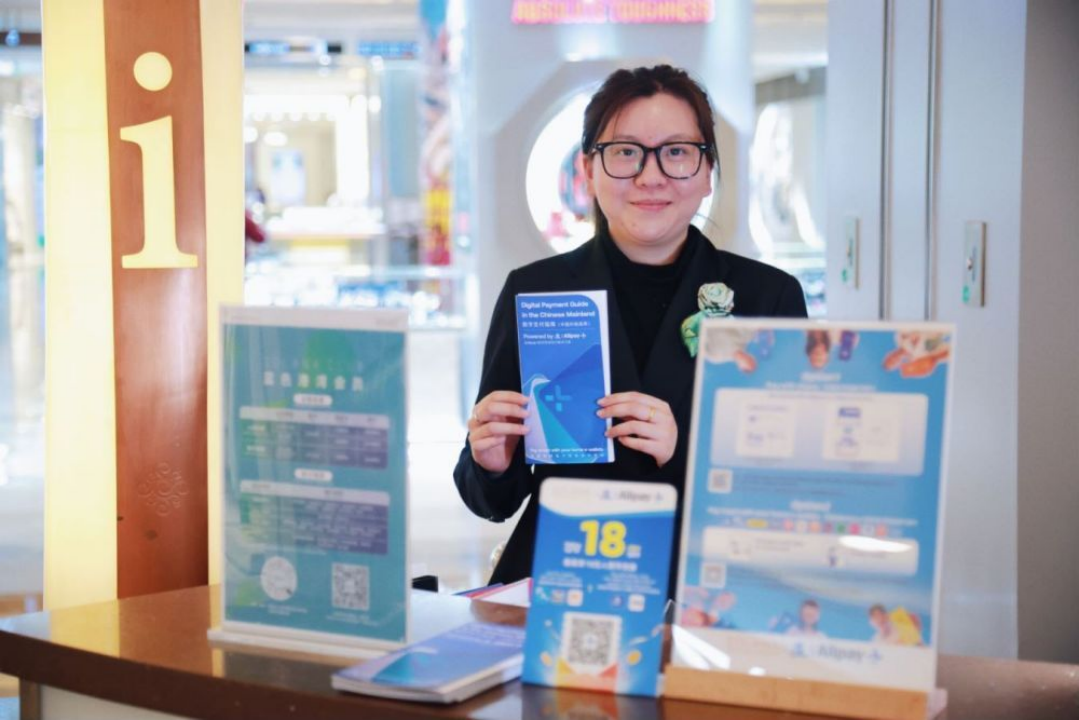 在位于北京朝阳区的蓝色港湾,外国游客在支付宝绑定境外银行卡后,用手机就能实现扫码支付,整个过程十分“丝滑”。
