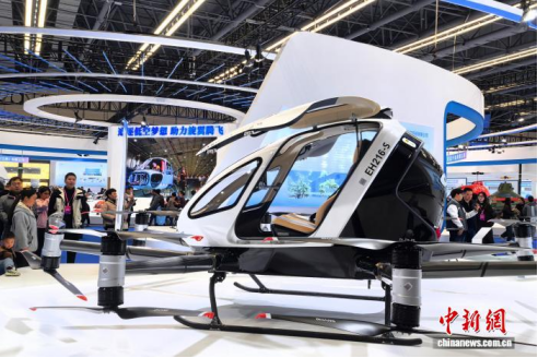 图为一家企业展示的电动垂直起降飞行器。